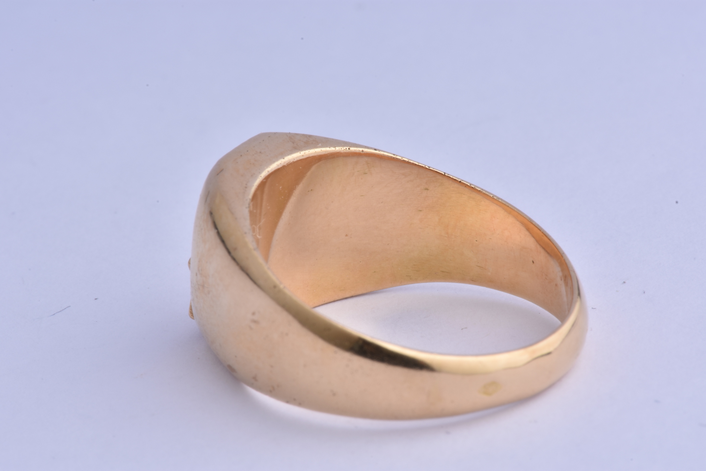 Anello con sigillo in oro giallo 18 carati (750 millesimi). Lettera MH in rilievo.