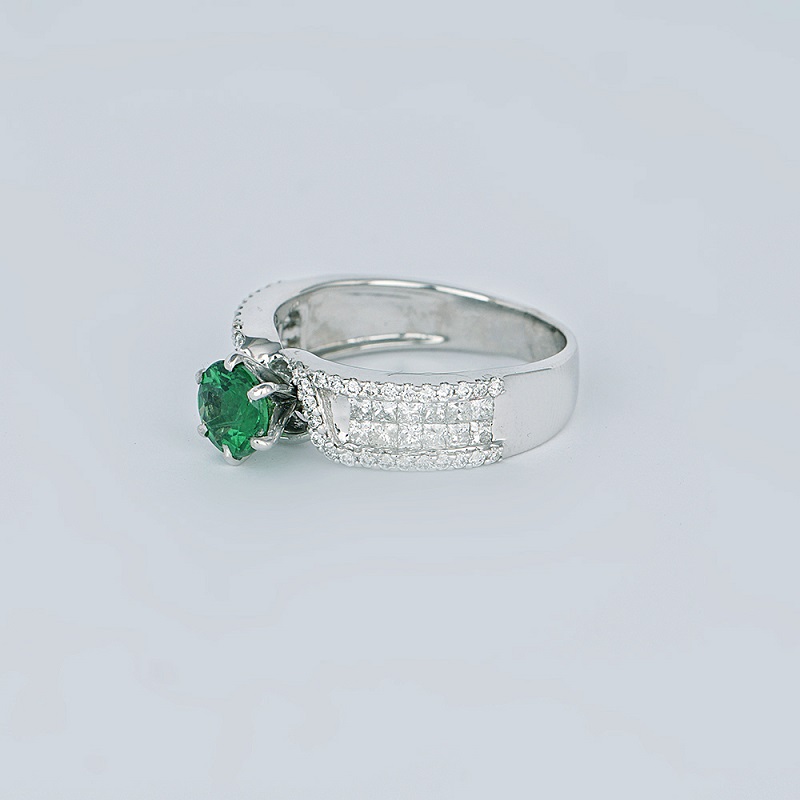 Anello in oro bianco con granato tsavorite e diamanti: 14 K / 585