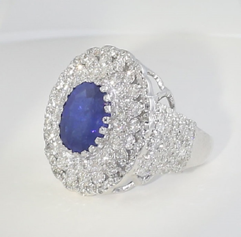 White Gold Designer Blue Sapphire & Diamond Ring : 14 K / 585 IGI certified