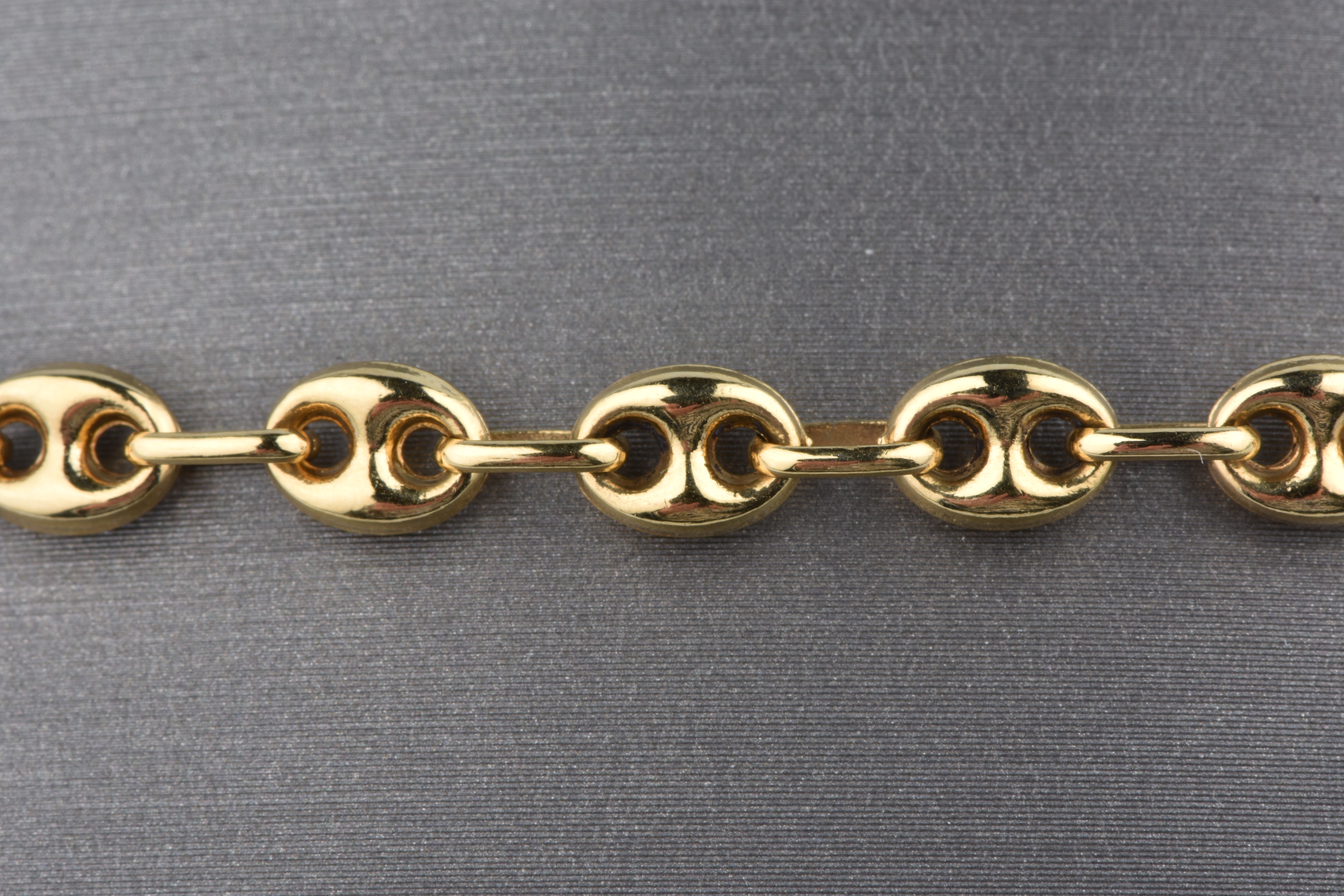 Bracciale in oro giallo 18 carati. Rete in grani di caffè, chiusura a moschettone.