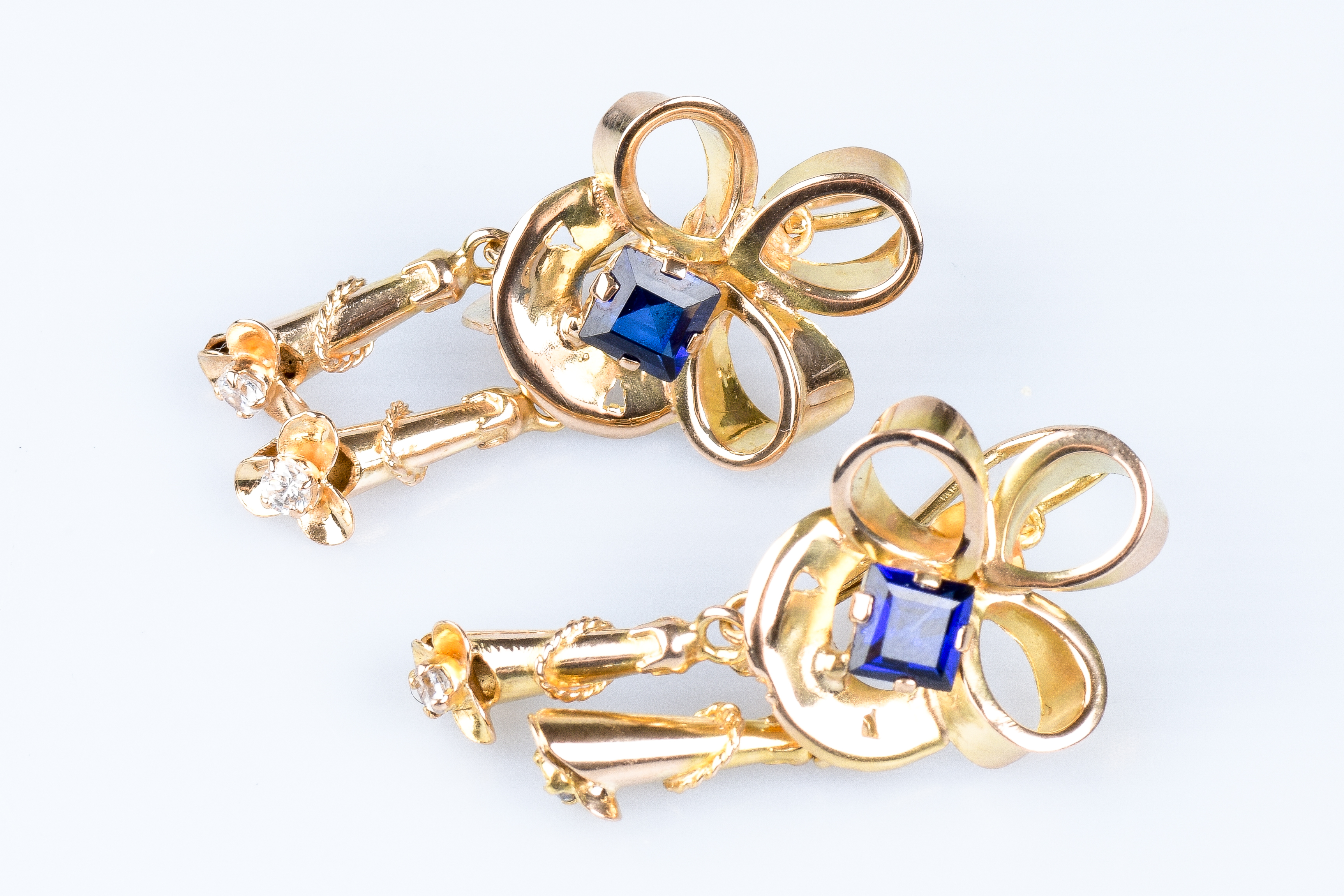 Orecchini in oro giallo 18 carati ornati da 2 zaffiri quadrati da 0,26 carati ciascuno, ovvero 0,52 carati in totale e 4 ossidi di zirconio. Peso: 7,20 g. Dimensioni: 3,20 x 1,68 x 1,20 cm Marchio d’oro segnato sul gioiello. Condizione: come nuovo Gioiello consegnato in una lussuosa scatola con certificato di autenticità. Le pietre preziose sono solitamente trattate per migliorare il colore o la chiarezza. Nessuna ricerca è stata fatta su questo oggetto specifico.