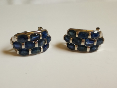 Paio di orecchini in Argento 925/1000 ornati da 20 ZAFFIRI taglio ovale