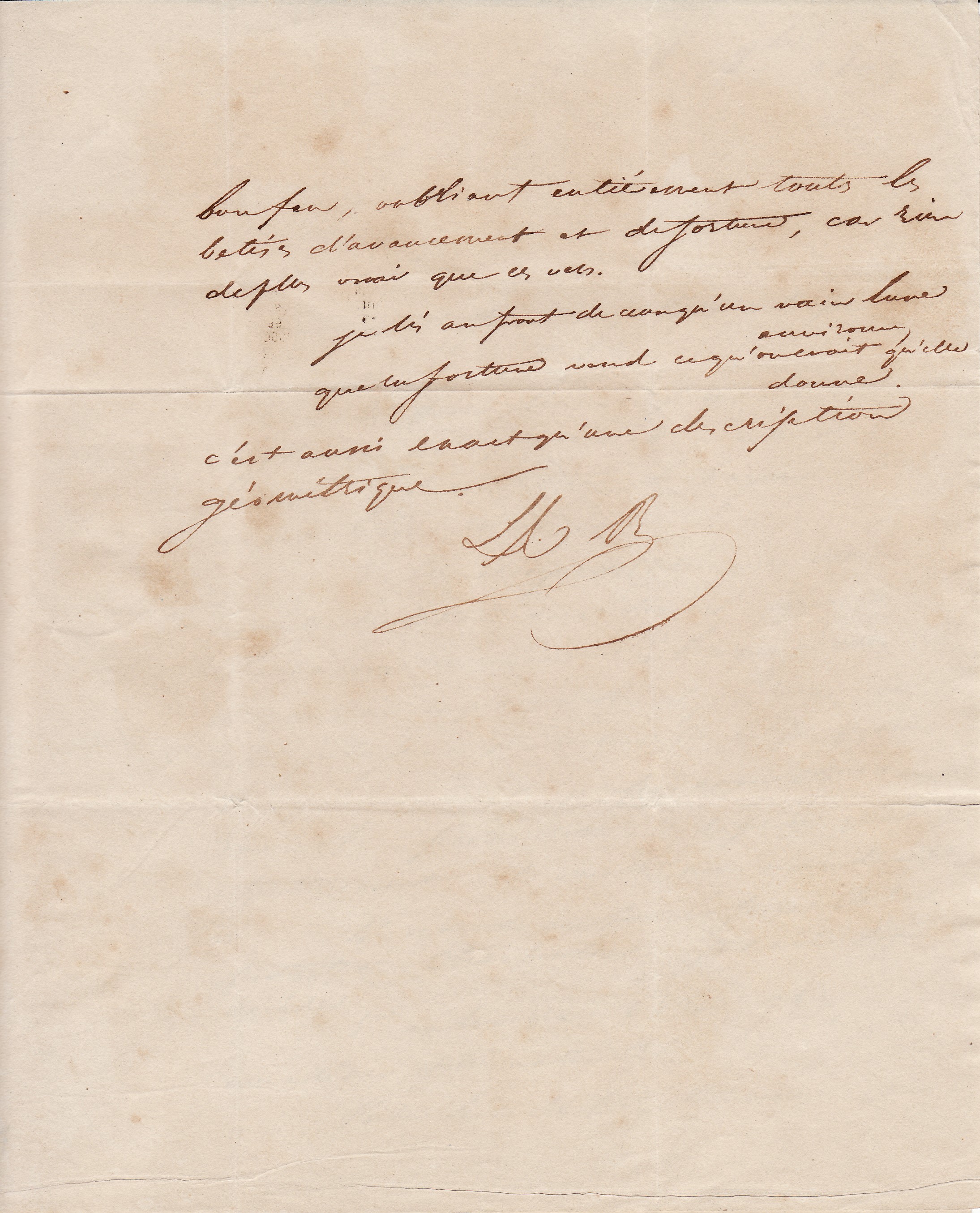 Lettera autografa firmata "HB" a sua sorella Pauline. Vienna 18 ottobre 1809; 2 ½ in-4 pagine. Leggera bagnatura