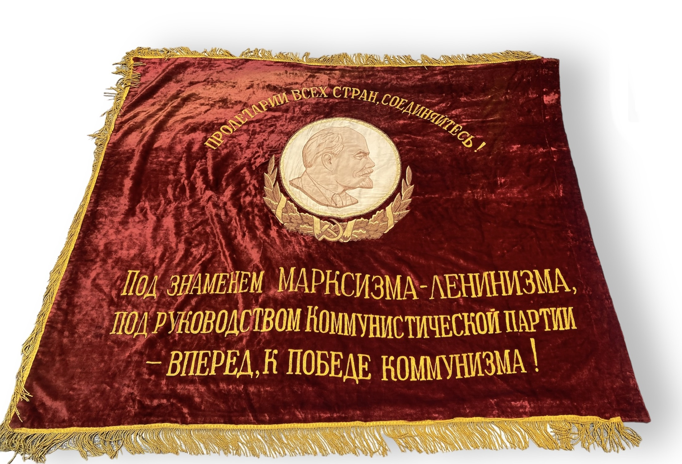 Bandiera rivoluzionaria russa Entrambe le parti Frange Circa 1950 Dimensioni: 140x160 cm