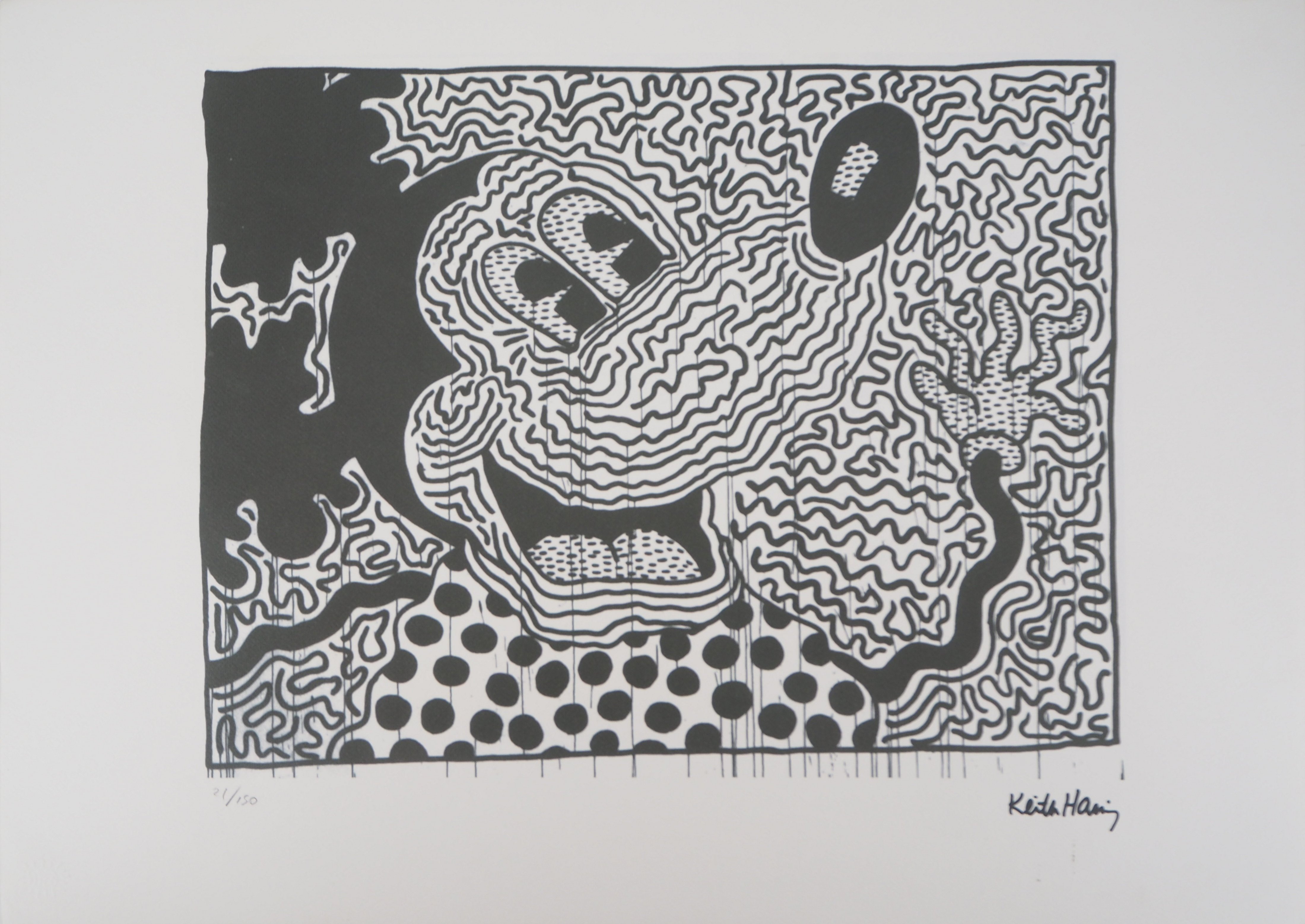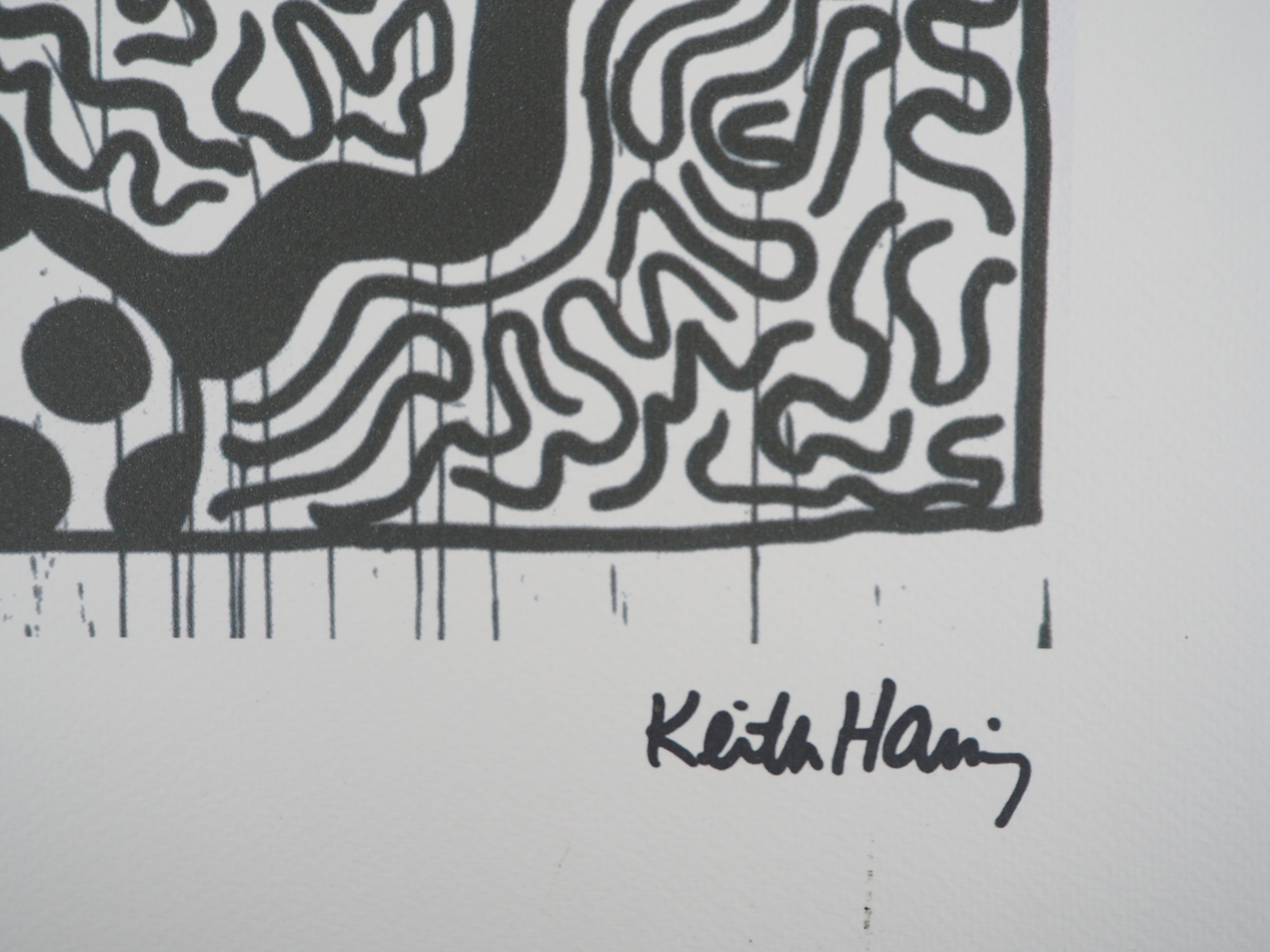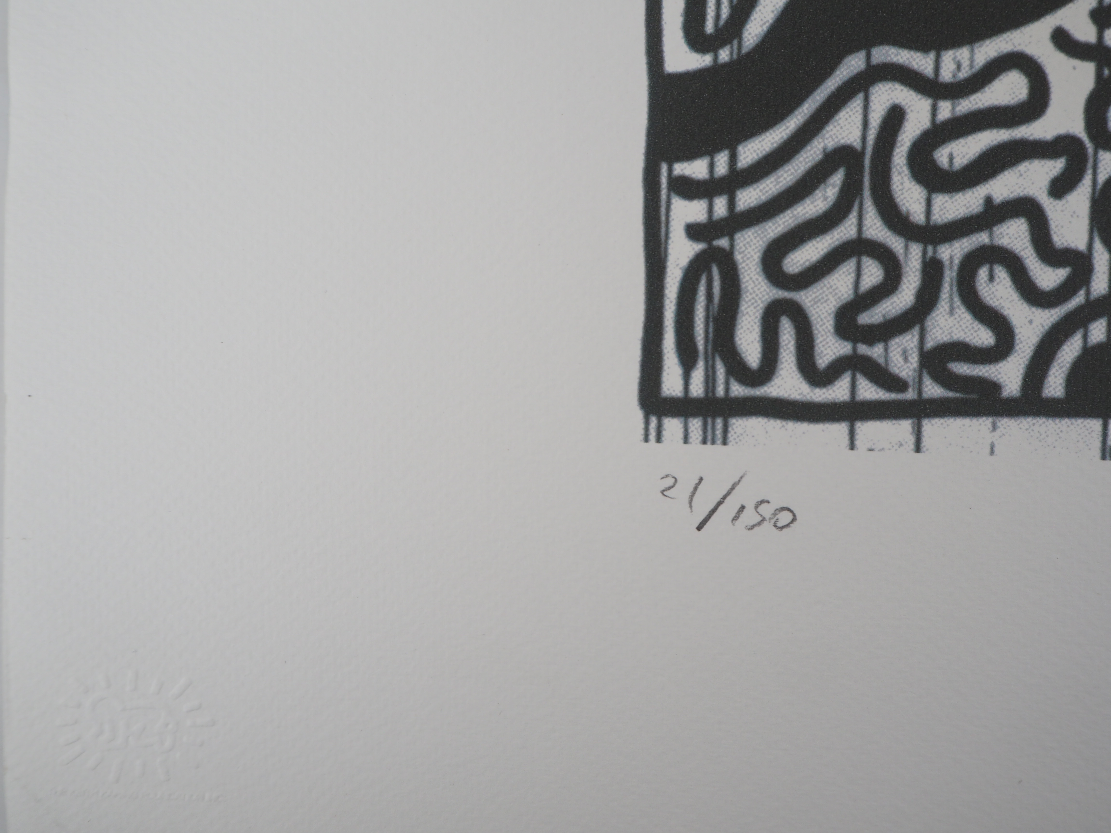 INFORMATION : Rare édition originale, réalisée et authentifiée par le cachet sec de la "Keith Haring Fondation" ; seules éditions reconnues.